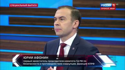 Первый заместитель Председателя ЦК КПРФ Ю.В. Афонин принял участие в программе «60 минут» на телеканале «Россия-1».