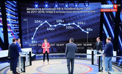 Ведущие предложили обсудить новость о том, что российские вложения в гособлигации США сократились на 3 млрд. долларов. Официальная пропаганда сейчас пытается подать это событие чуть ли не как долгожданное «освобождение» России от американской кабалы. Зампред ЦК КПРФ отметил, что этот вывод денег из американского госдолга, увы, не похож на долговременную тенденцию. В реальности политика, начатая еще в 90-е Гайдаром и Чубайсом, продолжается. Например, с 2008 года объем вложений России в государственные бумаги США вырос в 3,5 раза (с 30 млрд. долларов до нынешних более чем 90 млрд.). Юрий Афонин также напомнил, что только за 2017 год российские вложения в американские гособлигации увеличились на 16 миллиардов долларов. Это при том, что США в этот период продолжали отрицать принадлежность Крыма России, нанесли первый ракетный удар по Сирии, вводили антироссийские акции.