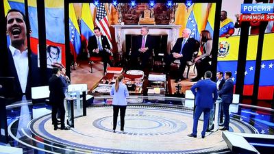 В студии обсуждались тревожные вести из Венесуэлы. Продолжаются беспорядки и перестрелки на границах этой страны с Колумбией и Бразилией, сотни раненых, есть жертвы. На этом фоне в колумбийской столице Боготе проходит встреча назначенного США «президентом Венесуэлы» Хуана Гуайдо и вице-президента США Майкла Пенса. Американский чиновник с репутацией «ястреба» от имени Трампа обещает венесуэльскому лжепрезиденту «100%-ную поддержку». Что это значит? Как далеко готовы зайти американцы? Неужели мир накануне новой кровавой войны, организованной США?
