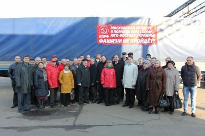 8 октября силами КПРФ, коммунистами Москвы и Подмосковья на юго-восток Украины был отправлен еще один гуманитарный конвой. Груз помощи начал свое следование из Подмосковного Совхоза имени Ленина. По пути к месту назначения к автоколонне присоединится транспорт из Тульской области, Липецка, Воронежа, Волгограда, Северной Осетии, Марий Эл, Кабардино-Балкарии и Карачаево-Черкесии и Ставрополья.