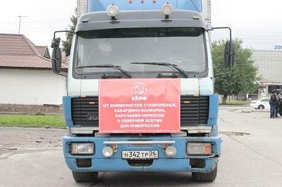 Большую работу проводят коммунисты на Северном Кавказе. После рабочего совещания в Нальчике, мы проводили груз гуманитарной помощи Юго-Востоку Украины, собранный коммунистами Ставропольского края, Кабардино-Балкарии, Северной Осетии и Карачаево-Черкесии, который в составе конвоя прибудет в Новороссию уже 9 октября.