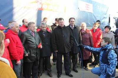 Проводить конвой и пожелать доброго пути сопровождающим прибыли: Заместитель Председателя ЦК КПРФ Владимир Иванович Кашин, Первый секретарь МК КПРФ Николай Иванович Васильев, секретарь МГК КПРФ, депутат Госдумы ФС РФ Владимир Романович Родин, Секретарь Московского Областного комитета КПРФ, депутат Московской Областной Думы Александр Анатольевич Наумов, депутат парламента ЛНР Игорь Гуменюк, активисты районных и городских отделений областного комитета компартии. С напутственным словом выступил заместитель председателя ЦК КПРФ Владимир Иванович Кашин, пожелав счастливого пути водителям и сопровождающим гуманитарный конвой.