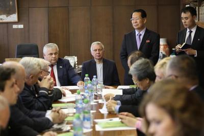 С корейской стороны: Чрезвычайный и Полномочный Посол КНДР в РФ Ким Хен Чжун, начальник сектора по России и СНГ Международного отдела ЦК Трудовой партии Кореи (ТПК) Ан Хен Мин, советник посольства КНДР в РФ Пхё Мун Су, сотрудник российского сектора международного отдела (ТПК) Ким Мун Сон, ответственные работники Посольства.