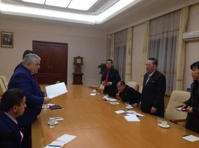 На приеме у руководства Трудовой Партии Кореи секретарь ЦК КПРФ Казбек Тайсаев представил членов российской делегации. Диалог прошел в атмосфере взаимопонимания, осознания того, что подобные встречи ощутимо укрепляют многосторонние связи между братскими партиями.
