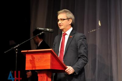 «Главе Республики Александру Владимировичу Захарченко удалось сформировать хорошую команду. Как пример – Министерство иностранных дел, возглавляемое Александром Кофманом, проводит достаточно большую работу по признанию независимости Донецкой Народной Республики. И очень многое им удается. Уже один субъект международного права, Южная Осетия, признала Донецкую Народную Республику. Народ в немыслимых, кровавых испытаниях выстрадал свою свободу и право на будущее. Пройдя через многочисленные жертвы и трагедии, я уверен – Донецкий народ имеет право на благоустроенную, достойную жизнь. Наша партия свой выбор давно уже сделала: год назад мы проголосовали за признание итогов референдума, который здесь прошел. И со стороны руководства Республики в лице Председателя Народного Совета ДНР Дениса Пушилина постоянно ощущаем взаимопонимание и всемерную поддержку. Мы в полном объеме работаем с признанной нами – коммунистами – Донецкой Народной Республикой.