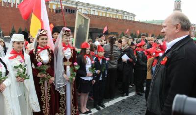 Северо-Кавказский Федеральный Округ был представлен на Красной Площади большой делегацией. 70 школьников из Кабардино-Балкарии, Северной Осетии и Дагестана под флагами своих республик впервые встретились с руководством КПРФ во главе с ее лидером Геннадием Андреевичем Зюгановым. Председатель ЦК КПРФ поздравил ребят и обратился к ним с напутствием, пожелав успехов в учебе.