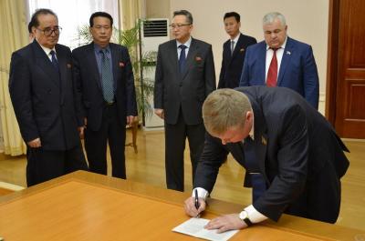 С 26 марта по 3 апреля в Корейской Народно-Демократической Республике находилась делегация под руководством секретаря ЦК КПРФ, первого заместителя Председателя ЦС СКП-КПСС, члена Комитета ГД по делам Содружества Независимых Государств, евразийской интеграции и связям с соотечественниками, координатора депутатской группы Государственной Думы по связям с Парламентом КНДР Казбека Куцуковича Тайсаева.
