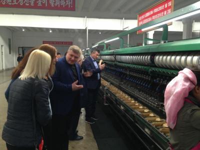 С особым интересом делегация ознакомилась с трудовыми буднями одного из образцовых предприятий страны – фабрики по производству шелковой нити, где работают свыше полутора тысяч человек. Кроме самого высокого технологического уровня производства здесь созданы исключительно удобные условия для всего персонала предприятия: ясли и детские сады, школы, спортивный комплекс, в который входят плавательный бассейн и стадион. При предприятии открыт многофункциональный учебный центр, в котором работники, вне зависимости от их возраста, повышают свою квалификацию, получают дополнительный объем знаний необходимый в своей профессии. Всё это - еще одно яркое проявление заботы, которую руководство страны проявляет по отношению к труженикам, всем тем, кто своим добросовестным трудом развивает промышленно-производственный потенциал Кореи, трудится во благо ее будущего.