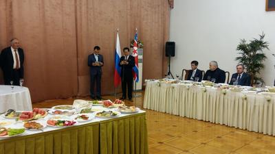 Не стал исключением и сегодняшний прием, организованный в Посольстве КНДР, прошедший в теплой дружественной атмосфере, за что от имени Председателя ЦК КПРФ Геннадия Андреевича Зюганова, Президиума ЦК КПРФ я приношу свою искреннюю благодарность нашим корейским товарищам, Чрезвычайному и Полномочному Послу Корейской Народно-Демократической Республики в Российской Федерации Ким Хен Джуну».