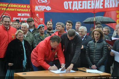 Особо важным мне видится подписание Соглашения между КПРФ и Компартией Донецкой Народной Республики, между Штабом КПРФ по оказанию гуманитарной помощи Новороссии и внутренними войсками Донецкой Народной Республики, а также КПРФ с бригадой «Призрак» Луганской Народной Республики. Оно предусматривает, что вышеотмеченные представители Новороссии становятся основными структурами по приему, оформлению и дальнейшему адресному распределению полученной гуманитарной помощи.В чем важность этого соглашения – распределение поступающего груза будет координироваться несколькими государственными общественно-политическими структурами и под четким контролем коммунистов ДНР и ЛНР, что в дальнейшем сделает распределение гуманитарной помощи максимально прозрачным, исключит любые издержки и организационные проблемы по реализации задач, поставленных Президиумом ЦК КПРФ перед Штабом по оказанию гуманитарной помощи Донецкой и Луганской Народным Республикам».