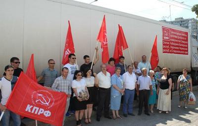 «40-й по счету гуманитарный конвой, собранный коммунистами Московской области и Москвы, состоящий из трех двадцатитонных машин, был отправлен 18 августа в Новороссию. По пути следования к нему присоединят свои грузы регионы центральной России: Тула, Воронеж, Курск, Орел, Саратов. Большой объем гуманитарного груза был подготовлен и коммунистами Северо-Кавказского Федерального округа.