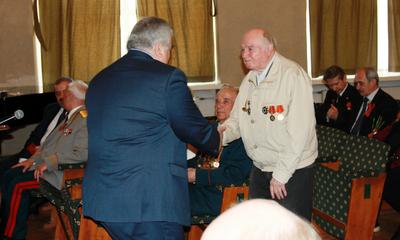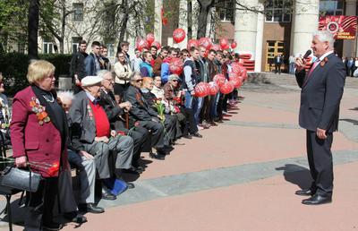 С приближающимся праздником Победы собравшихся поздравил ректор МАДИ В.М. Приходько. Слово также было предоставлено депутату Госдумы, выпускнику вуза Казбеку Куцуковичу Тайсаеву, который от имени КПРФ и ее лидера Геннадия Андреевича Зюганова поздравил всех с наступающим праздником Победы. Перед началом праздничного концерта, первый заместитель Председателя ЦС СКП-КПСС Казбек Тайсаев наградил ветеранов Великой Отечественной войны медалями КПРФ «В ознаменование 70-летия Великой Победы».