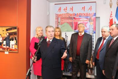 «Я приветствую всех товарищей, присутствующих в этом зале. Первый и второй этапы этой выставки прошли в Пхеньяне и в Москве. Выставка в Минске это третий этап международной выставки «История Дружбы», организованная Коммунистической партией Российской Федерации, Трудовой партией Кореи и Коммунистической партией Белоруссии.