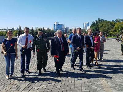 В четверг, 8 сентября, делегация ЦК КПРФ и СКП-КПСС, которую возглавил Секретаря ЦК КПРФ, первый заместитель Председателя Центрального Совета СКП-КПСС, первый заместитель председателя комитета ГД по делам СНГ, евразийской интеграции и связям с соотечественниками Казбек Куцукович Тайсаев прибыла в столицу Донецкой Народной Республики г. Донецк, где при участии Главы ДНР Александра Захарченко состоялся торжественный прием ветеранов Великой Отечественной войны, приуроченный ко Дню освобождения Донбасса.