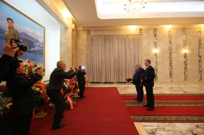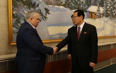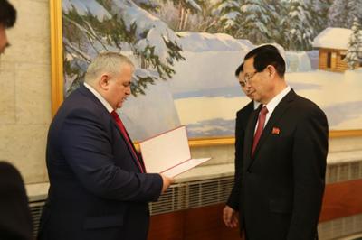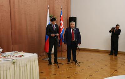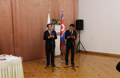 После чего Чрезвычайный и Полномочный Посол КНДР в РФ Ким Хен Чжун высказал пожелания здоровья и благотворной деятельности руководителям Российской Федерации и Корейской Народно-Демократической Республики.