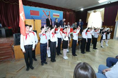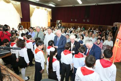 Своих старших товарищей поздравила пионерская организация из школы №5 г. Цхинвал, ряды которой пополнили 12 юных ленинцев. Пионерские галстуки им повязали почетные гости и делегаты съезда, а также директор школы Бестаева Аза Александровна, которая уже более 20 лет руководит учительским и ученическим коллективом школы.