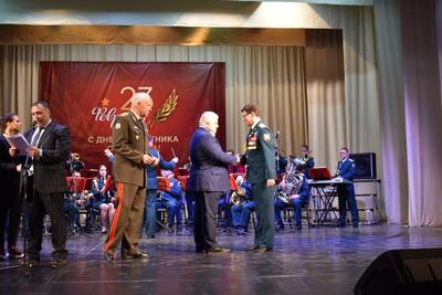 С докладом выступил Председатель Всероссийского общественного движения в поддержку армии, оборонной промышленности и военной науки, командующий 58-й Армией в 2003-2006гг., генерал-лейтенант Виктор Соболев. Он рассказал об истории создания Советской Армии, о том, как 23 февраля 1918 года отряды Красной Армии одержали свои первые победы под Псковом и Нарвой над регулярными войсками кайзеровской Германии. И как могучая Красная Армия отстояла рубежи родины в годы Великой Отечественной войны. Её ветеранов — присутствовавших в зале поимённо — приветствовали стоя и громом аплодисментов. В ответном слове ветеран Великой Отечественной пожелал всем добра, мира и попросил не забывать общую историю, богатую на подвиги и героизмом. Молодому поколению был дан наказ: быть достойными отцов, дедов и прадедов. После этого всем ветеранам вручили памятные подарки.