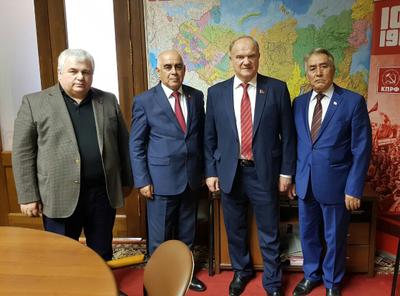 С руководством Коммунистической партии Республики Таджикистан встретился Председатель ЦС СКП-КПСС, Председатель ЦК КПРФ, руководитель фракции КПРФ в ГД Г.А. Зюганов. Геннадий Андреевич поблагодарил делегацию за приезд, пригласил принять участие в мероприятиях посвященных 100-летию Великой Октябрьской Социалистической Революции, которые будут проходить с 31 октября по 8 ноября 2017 года в Санкт –Петербурге и Москве. Где будет возможность продолжить разговор о сотрудничестве между Коммунистической партией Российской Федерации и Коммунистической партией Республики Таджикистан.