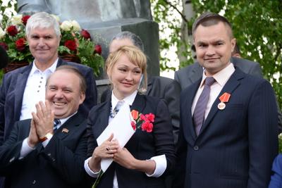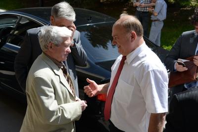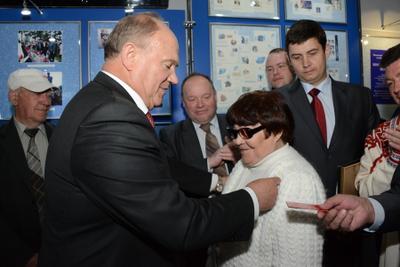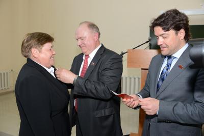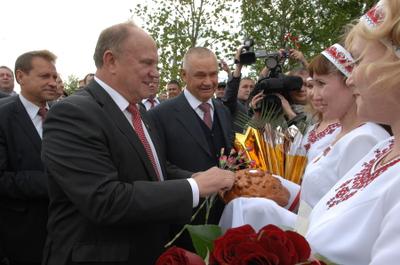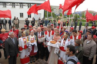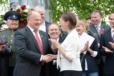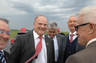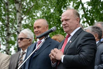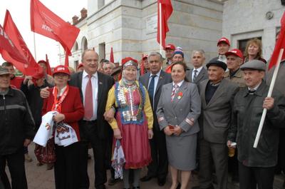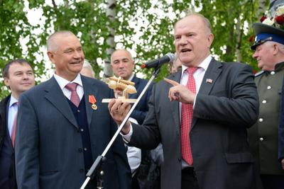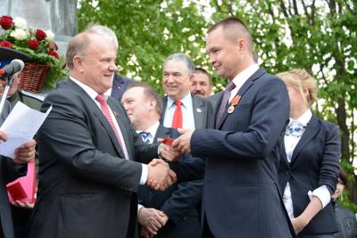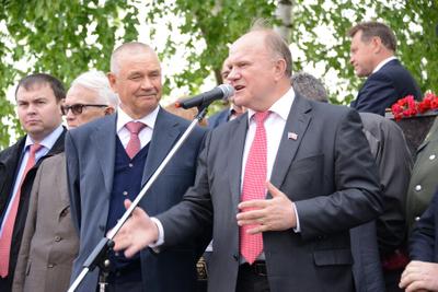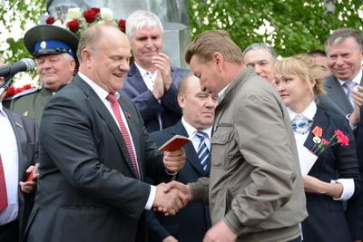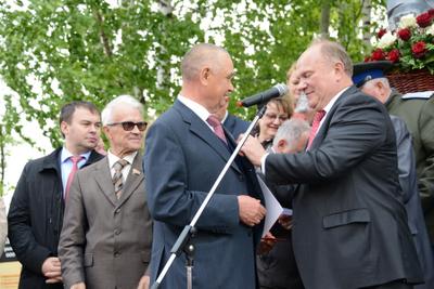 На митинге выступил Геннадий Андреевич Зюганов, который вручил партийные награды лучшим труженикам и партбилеты новым коммунистам.