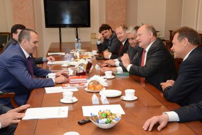 В завершении визита состоялась пресс-конференция Председателя ЦК КПРФ Геннадия Андреевича Зюганова и депутатов Госдумы Обухова, Шурчанова и Тарнаева.
