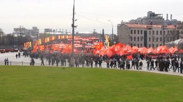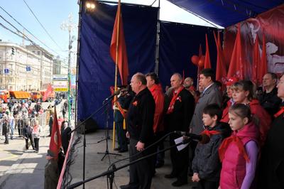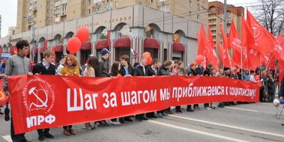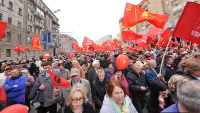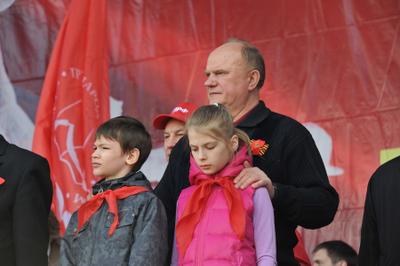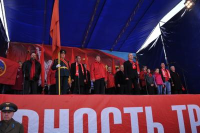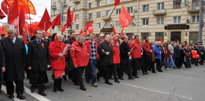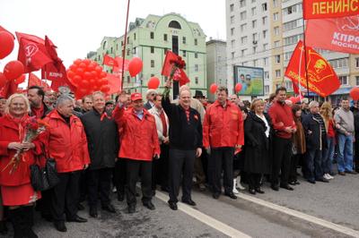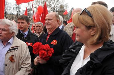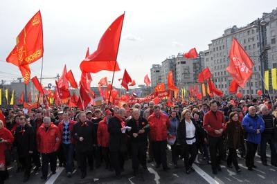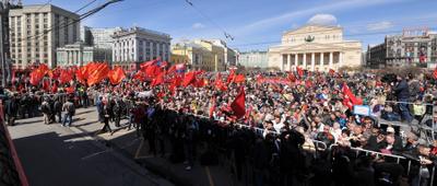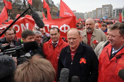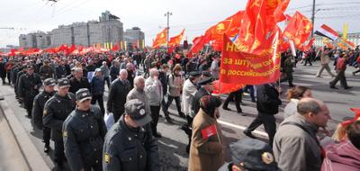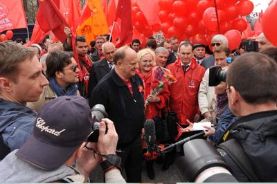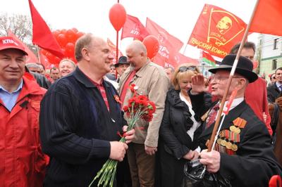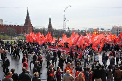 В 11-30 1 мая внушительная колонна демонстрантов двинулась от Калужской площади столицы к Кремлю. Во главе манифестации - Председатель ЦК КПРФ Г.А. Зюганов, заместители Председателя ЦК КПРФ В.И. Кашин и В.Ф. Рашкин, секретари ЦК КПРФ С.П. Обухов, Н.В. Арефьев, П.С. Дорохин, К.К. Тайсаев, депутаты Госдумы и Мосгордумы.