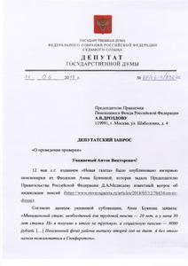 «Отказ выплачивать гражданам достойные пенсии в соответствии с честно отработанными ими годами трудового стажа, - поступок, конечнонеблагодарный, - заметил Валерий Рашкин. - Хорошо бы разобраться, кто из должностных лиц органов ПФР ущемляет права бравой пенсионерки и на каком основании. Надеюсь, в данном случае справедливость восторжествует, и Анне Буяновой будут назначена заслуженная пенсия».