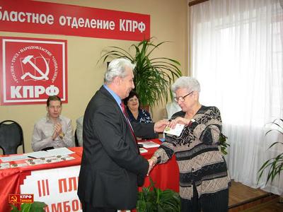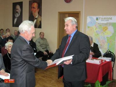 Перед рассмотрением повестки дня Андрей Игоревич от имени Президиума ЦК вручил ряду товарищей медали ЦК КПРФ «Дети войны» и «200 лет М.Ю. Лермонтову», а так же грамоты обкома партии.