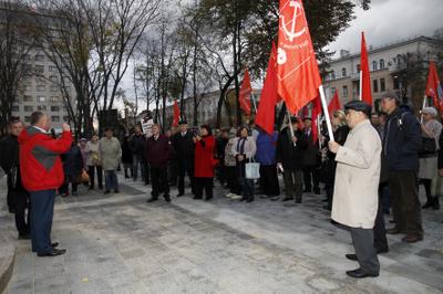 Открывая митинг, второй секретарь Воронежского обкома КПРФ, руководитель фракции коммунистов областной Думы А.И. Рогатнев призвал всех людей труда сплотиться и заставить нынешнюю власть слышать народ.