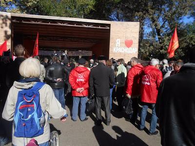 Краснодарское отделение КПРФ активно поддержало рабочих предприятия. Активисты Компартии присоединились к митингующим. Акция сопровождалась использованием коммунистической символики: над собравшимися развевались красные знамена, на сцене был растянут транспарант с лозунгом "Пролетарии всех стран, соединяйтесь"!