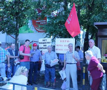 В пикетах приняли участие коммунисты, комсомольцы, сторонники партии, представители общественности, жители разрушенных городов юго-востока Украины.