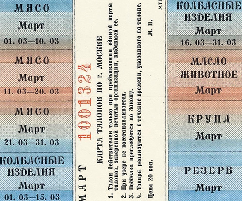 Даже в 1987 году производство продуктов питания росло опережающими темпами по сравнению с ростом численности населения и заработной платы. Прирост производства по сравнению с 1980 годом в мясной отрасли составил 135 процентов, в маслосыродельной - 131, в рыбной - 132, мукомольно-крупяной - 123. Средняя зарплата увеличилась на 19 процентов. Все предприятия пищевой промышленности работали на полную мощность и без перебоев. Но уже в конце 1988 года даже в Москве, откуда жители ближайших городов и командированный люд вывозили все, что могли «достать», появились талоны. Вскоре уже и по ним что-то купить стало почти невозможно. Люди сутками дежурили в очередях, каждые три часа устраивая переклички. Чуть ли не дрались и недоумевали: куда же все вдруг подевалось, вплоть до табака?