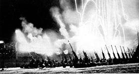 В назначенное время, секунда в секунду, небо над военной Москвой озарилось вспышками первого салютного залпа. Его эхо покатилось по улицам столицы, ворвалось в мощные радиоусилители, чтобы через несколько секунд вырваться через микрофоны миллионов радиоприёмников и радионаушников в разных уголках нашей страны. Потом был второй залп, третий…