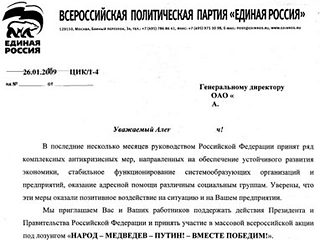 Интернет-портал NEWSRU.COM в связи с массовыми акциями в поддержку антикризисных мер, предпринятых президентом и правительством РФ, которые проходят в субботу 31 января по всей стране под лозунгом "Народ! Медведев! Путин! Вместе победим!", распространил любопытную информацию. Как выяснилось, для создания массового эффекта митингов партия власти рассылает по всем системообразующим предприятиям письма с приглашением поучаствовать в акции. Предприятия воспринимают письма не как просьбу, а как указание.