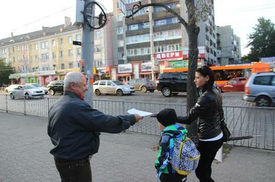 Среди прохожих распространялась подготовленная Калининградским горкомом КПРФ листовка, в которой разоблачается ложь Горбачева, заявившего, что якобылидер КПРФ Геннадий Зюганов причастен к развалу Советского Союза.