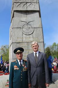 После возложения цветов к барельефу с изображением И. В. Сталина к собравшимся обратился депутат Областной думы, первый секретарь Калининградского обкома КПРФ И. А. Ревин. Он поздравил всех с праздником и напомнил, что Победу одержал именно Советский Союз, и каждый второй из числа погибших бойцов и командиров Красной Армии был коммунистом. Затем состоялось награждение ветеранов вооруженных сил медалью ЦК КПРФ «70 лет Великой Победы».