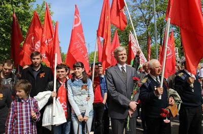 9 мая, в день 70-летия Великой Победы, калининградские коммунисты приняли участие в торжественном шествии и возложении цветов у памятника 1200 гвардейцам.