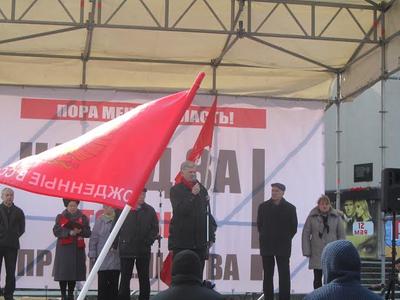 В воскресенье, 27 марта, калининградские коммунисты под лозунгом«Пора менять власть. Народ за отставку правительства» провели Народный сход. В акции, помимо КПРФ, приняли участие ЛКСМ, РОТ-Фронт, движение «Рожденные в СССР» и представители инициативной группы экологов из поселка Нивенское.