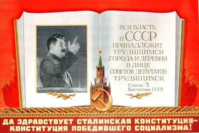 Иосифом Виссарионовичем Сталиным Союз ССР был определен как «социалистическое государство рабочих и крестьян, в котором вся власть принадлежит трудящимся города и деревни в лице Советов депутатов трудящихся». Он сам оттачивал формулировку ст. 2 Конституции, в которой говорилось: «Политическую основу СССР составляют Советы депутатов трудящихся, выросшие и окрепшие в результате свержения власти помещиков и капиталистов и завоевания диктатуры пролетариата».