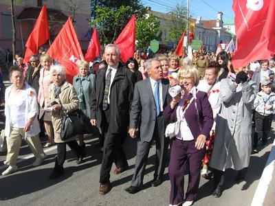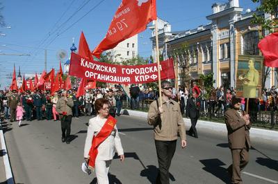 Под лозунгом «Коммунистическая партия – вдохновитель и организатор Великой Победы!» 9 мая коммунисты Калуги прошли колонной с алыми стягами и знаменами под военные марши духового оркестра в праздничном шествии граждан по центральным улицам города. В демонстрации и митинге приняли участие калужские коммунисты, ветераны Великой Отечественной войны, труженики тыла, ветераны Вооружённых Сил России, Ленинский коммунистический союз молодёжи совместно с движением «В поддержку армии», РУСО, «Всероссийским женским союзом – Надежда России», общественной организацией «Дети войны», Советом рабочих и служащих города, другими патриотическими организациями. Колонна под красными знаменами, с портретами Ленина, Сталина и полководцев Победы начала движение от сквера Мира. Впереди – Знамя Победы. Возглавляют колонну ветераны Великой Отечественной войны.