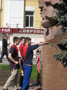 5 мая исполняется 200 лет со дня рождения великого революционера, гуманиста и мыслителя Карла Маркса, перед началом шествия комсомольцы возложили красные гвоздики к памятнику Карлу Марксу, который установлен напротив здания Городской Управы города Калуги.