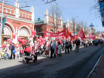 На Первомайскую демонстрацию коммунисты вышли с лозунгами: «Мир! Труд! Май!», «Смена курса – будущее России», «Рабочий – не гнись, за свои права борись!», «Людям труда – достойную жизнь!», «Власть народа – победа над бедностью!», «Вся власть - народу!», «Рабочий! Поднимайся на борьбу за свои права!», «Землю – крестьянам! Заводы – рабочим! Олигархам – шиш!», «Детям войны – государственную поддержку!».