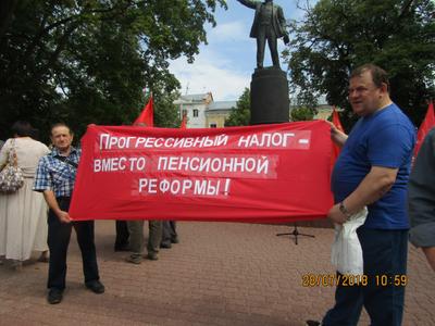 28 июля Калужский городской комитет КПРФ провёл митинг против повышения пенсионного возраста и НДС. Участники митинга выступили против повышения пенсионного возраста и потребовали отставки правительства Российской Федерации.