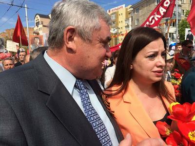 По традиции, краснознаменная колонна калужских коммунистов и сторонников КПРФ в День Победы находилась в общей колонне с жителями областного центра.
