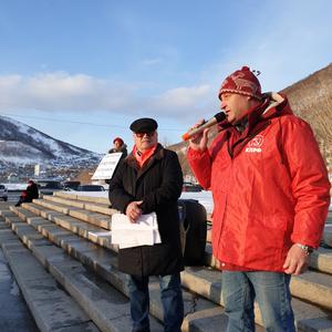 К митингу подготовилась и городская администрация: памятник Ленину и прилегающая территория от вчерашней пурги не были расчищены, а из динамиков звучали громкая музык и громкая речь дикторов. Но это не помешало собравшимся провести протестный митинг!