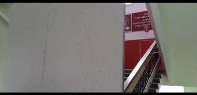 На фото: За гипсокартонной стенкой - собственно, третий этаж. Там находится камчатский крайком КПРФ. Лестницу бывший депутат-единорос Андрей Пятко, арендатор первых двух этажей, внезапно присвоил. Как так - непонятно. Сказал, чтобы спускались и поднимались по пожарной (серьезно, вот без шуток - по фасаду). Всё как-то некстати «совпало» с подачей мунфильтра кандидатом в губернаторы от КПРФ Валерием Быковым. Вот такая «ответочка» прилетела.