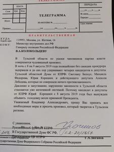 Напомним, ранее Юрия Корецких и ещё троих кандидатов в депутаты облдумы – Алексея Лебедева, Михаила Фёдорова и Светлану Белоус – незаконно, без санкции прокурора, задержала полиция и в течение 10 (!) часов удерживала в ОП «Центральный», издевательски объявив их «приглашёнными». Председатель ЦК КПРФ, руководитель фракции КПРФ в Госдуме Геннадий Зюганов уже направил по этому поводу телеграммы генеральному прокурору России, министру внутренних дел и председателю Центризбиркома РФ.