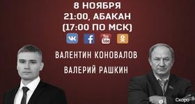 8 ноября в 21:00 по абаканскому времени (17:00, Москва) состоится прямая трансляция. Кандидат в губернаторы Хакасии от КПРФ Валентин Коновалов с депутатом Государственной Думы РФ Валерием Рашкиным обсудят выборную кампанию и ответят на вопросы жителей Хакасии.