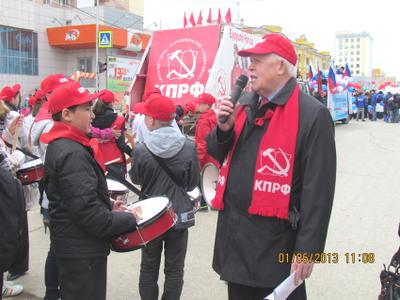 Как и в предыдущие годы, мы, коммунисты, после праздничного шествия на площади Дружбы провели митинг протеста против антинародных реформ. Первый секретарь Якутского рескома КПРФ Виктор Губарев, открывая митинг, отметил, что в праздничных демонстрациях, проходящей по всей республике, самое активное участие принимают коммунисты, комсомольцы и пионеры, основными лозунгами которых остаются: «Долой коррупцию!», «Прекратите грабить природные и сырьевые ресурсы государства!», «Не проливайте кровь и пот за грабителей-господ!», «Капитализм держится на жуликах и дураках!». Выступившие на митинге член ЦКРК Артур Алексеев, депутат Ил Тумэна Георгий Артемьев, доктор философских наук Лазарь Филиппов, первый секретарь Якутского горкома КПРФ Саргылана Гоголева и другие с исчерпывающей полнотой раскрыли главное содержание первомайского праздника в условиях нынешнего дикого капитализма. Первого мая, отметили они, рабочие всего мира празднуют свое пробуждение, свое объединение в единое мощное движение для борьбы против произвола, угнетения, за социалистическое устройство общества.