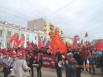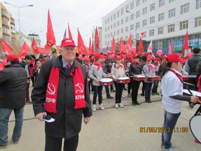 1 Мая тысячи и тысячи горожан вышли на главную улицу Якутска — проспект Ленина, участвуя в общегородской демонстрации. Представительной была колонна КПРФ и ее сторонников.