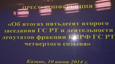 В Госсовете РТ состоялась пресс-конференция фракции КПРФ, посвящённая итогам 52-го заседания и деятельности депутатов фракции КПРФ ГС РТ IV созыва. На вопросы журналистов ответили руководитель фракции Х.Г. Миргалимов, депутаты А.В. Прокофьев, А.Л. Бикмуллин и депутат Госдумы РФ от Татарстана В.П. Пешков.